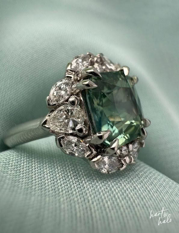 To start we sourced Jade her perfect Sapphire. A gorgeous Green with hints of teal. The colour play in this stone is just delicious!
