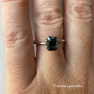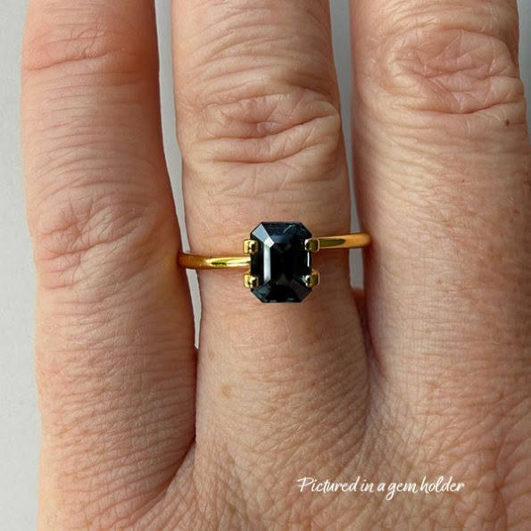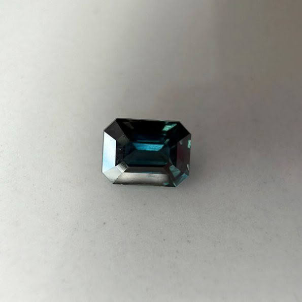 This deep Teal is a bit of a chameleon – bluer in natural light, greener in artificial light – but with those smooth step-cut facets throws whichever mood she’s in, beautifully. A lovey solid piece, with great shape from all angles, this one we reckon would look lovely sat up high in a bright, airy solitaire sort of design. Letting that light in and around her to maximise those reflections back at ya.